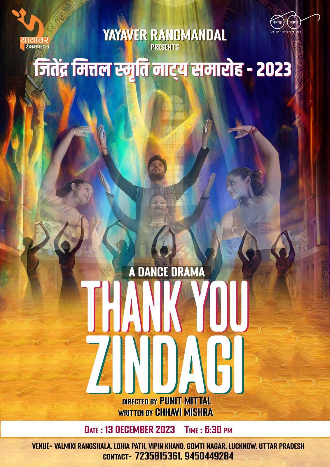 “Thank You Zindagi” का लेखन डॉ. चवि मिश्रा द्वारा किया गया है, जबकि निर्देशन पुनीत मित्तल ने किया है। इस नाटक में पारंपरिक और समकालीन नृत्य शैलियों का सुंदर मिश्रण है, जो जीवन के उतार-चढ़ाव और मानवीय भावनाओं को प्रभावशाली ढंग से दर्शाता है। यह नाटक केवल मनोरंजन का माध्यम नहीं है, बल्कि जीवन के प्रति सकारात्मक दृष्टिकोण और सांस्कृतिक संवेदनाओं का प्रतीक भी है।